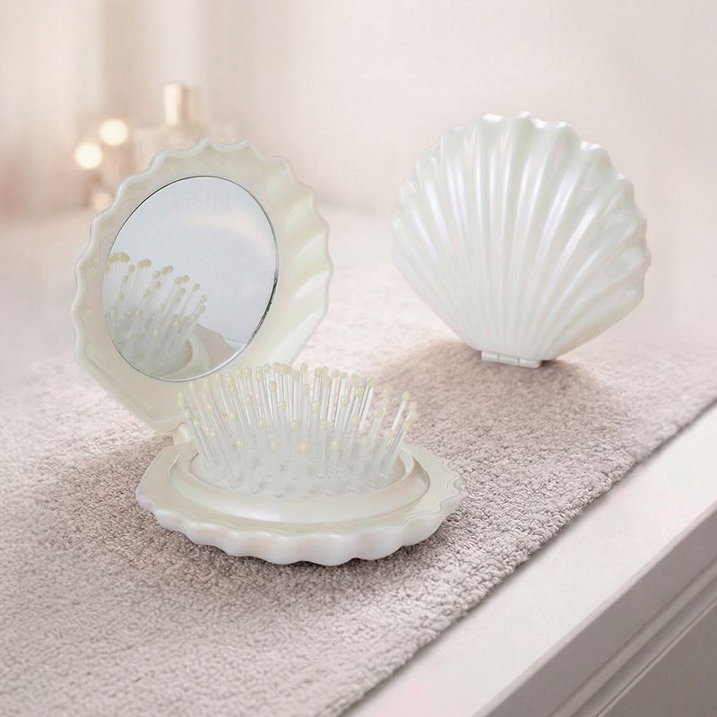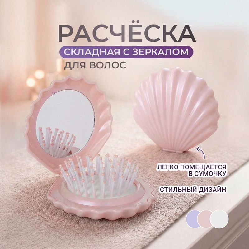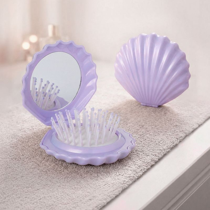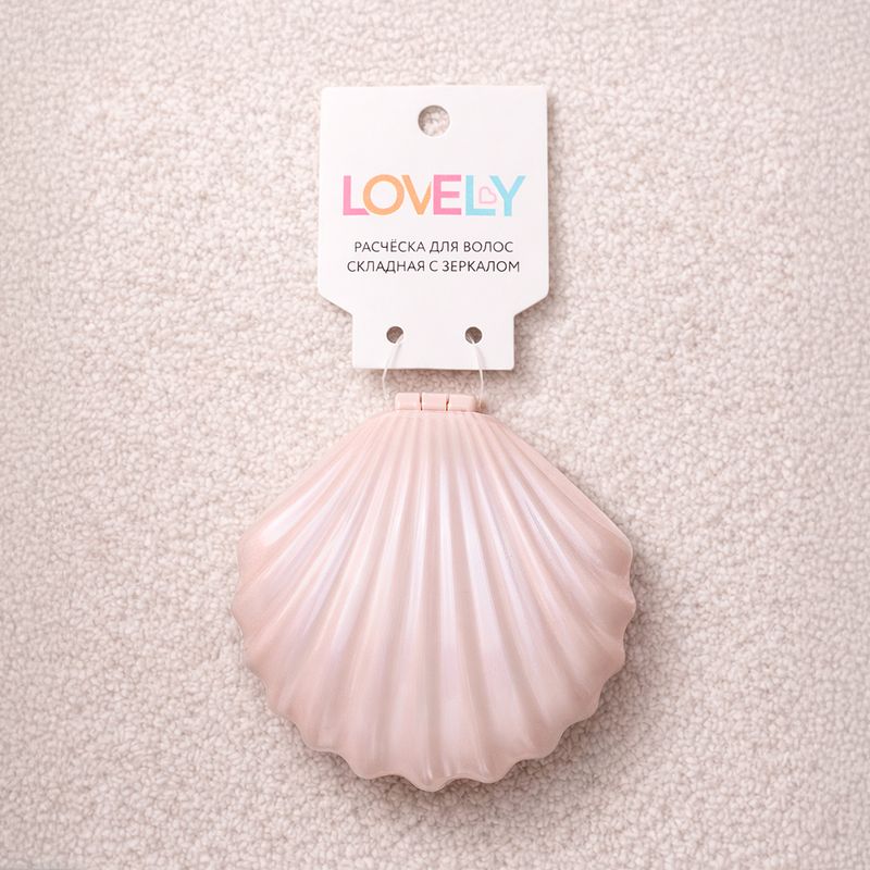 Расчёска для волос складная с зеркалом, Lovely, в форме ракушки – это стильный аксессуар, который легко поместится в сумочке или косметичке. Помогает быстро привести волосы в порядок в течение дня, где бы вы ни находились. Состав: АБС, ТПР, нейлон, стекло. Товар представлен в ассортименте.