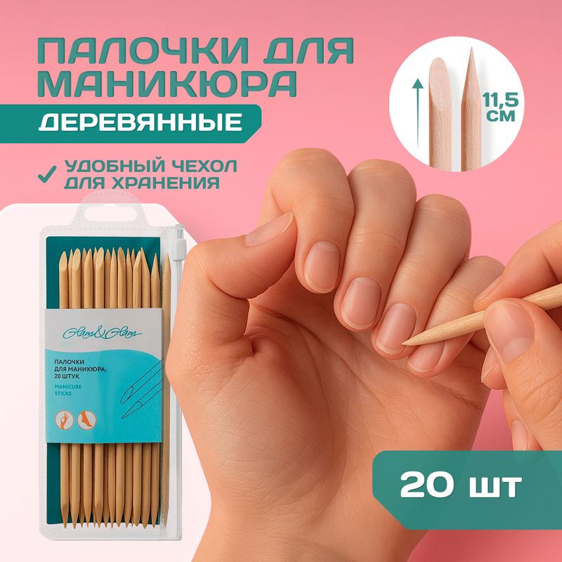 Палочки для маникюра деревянные, Glam&Glam, 20 шт.