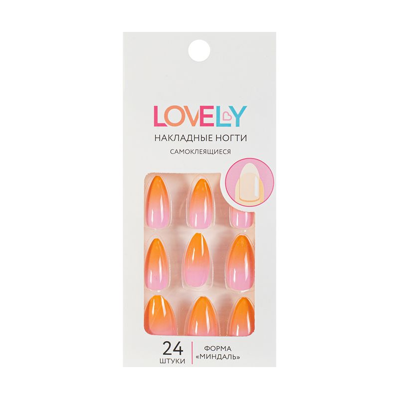 Набор накладных самоклеящихся ногтей, Lovely – простой и быстрый способ создать оригинальный маникюр. Перед применением ознакомьтесь с инструкцией и мерами предосторожности на упаковке. В наборе 24 самоклеящихся ногтя. Состав: АБС, полиэтилен, клеевой слой. Товар представлен в ассортименте.