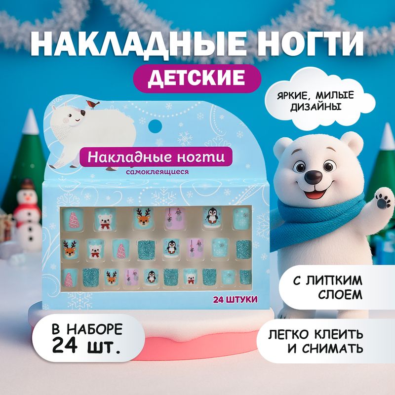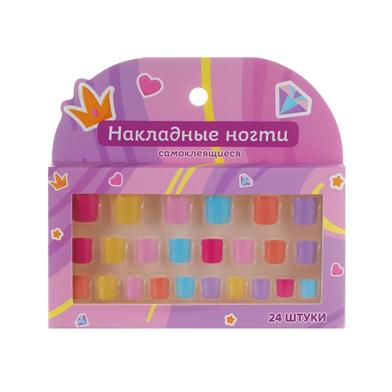 Накладные ногти самоклеящиеся – это отличный вариант для первого маникюра маленькой модницы! Яркие, милые дизайны. В наборе 24 накладных ногтя. Перед использованием ознакомьтесь с инструкцией и мерами предосторожности на упаковке. Состав: АБС, клеевой слой. Товар представлен в ассортименте.