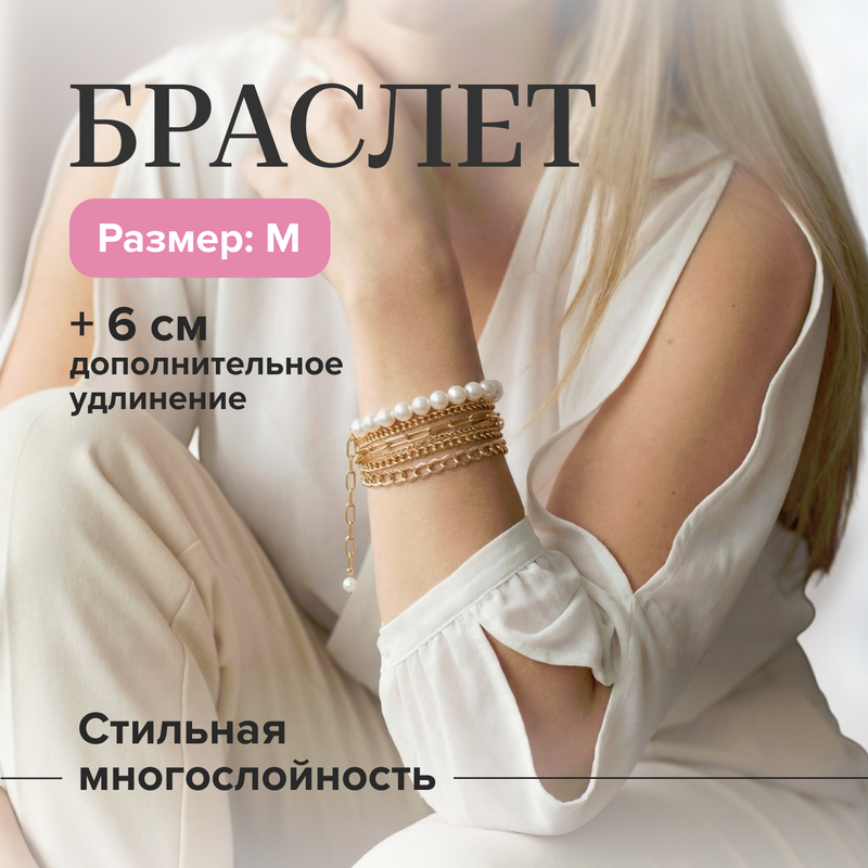 Браслет, INSTYLE, станет стильным акцентом в образе и добавит многослойности. Такой аксессуар легко дополнит как повседневные, так и вечерние комплекты. Размер M. Длина: 17/17,5/17,5/18/18,5/19 см + 6 см дополнительное удлинение. Состав: сталь с медным покрытием, цинковый сплав, АБС. Товар представлен в ассортименте. Изящные формы и деликатный блеск перламутра в коллекции бижутерии "Жемчуг"!