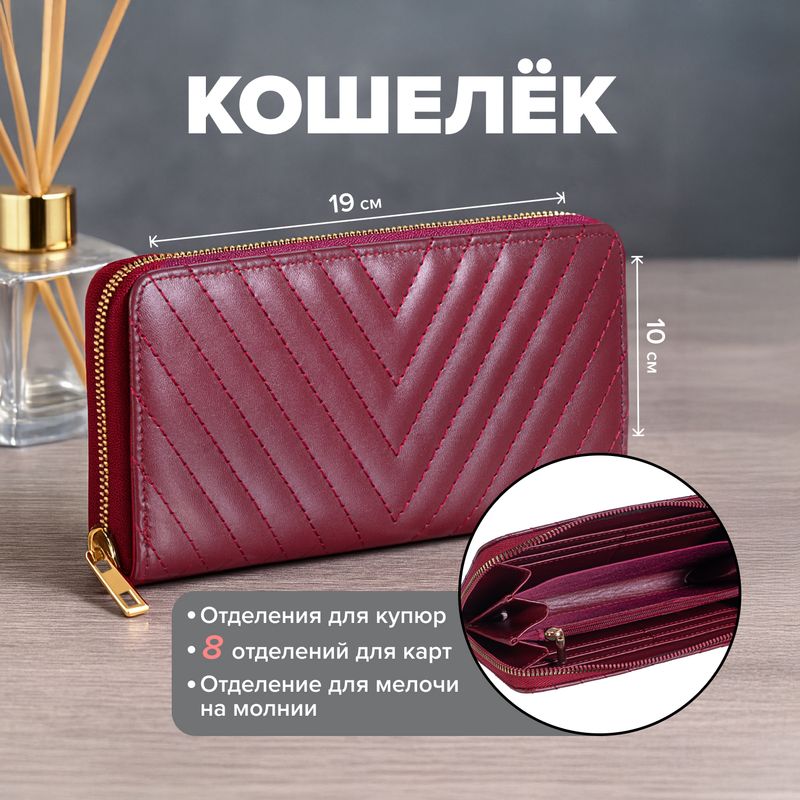 Кошелёк вытянутой формы – элегантный аксессуар в классическом стиле. Изготовлен из приятной на ощупь экокожи. Декорирован вышивкой. Внутри кошелька есть отделения для банковских карт, купюр и монет. Основное отделение на молнии. Размер: 10х2,5х19 см. Состав: АБС, сталь. Товар представлен в ассортименте.