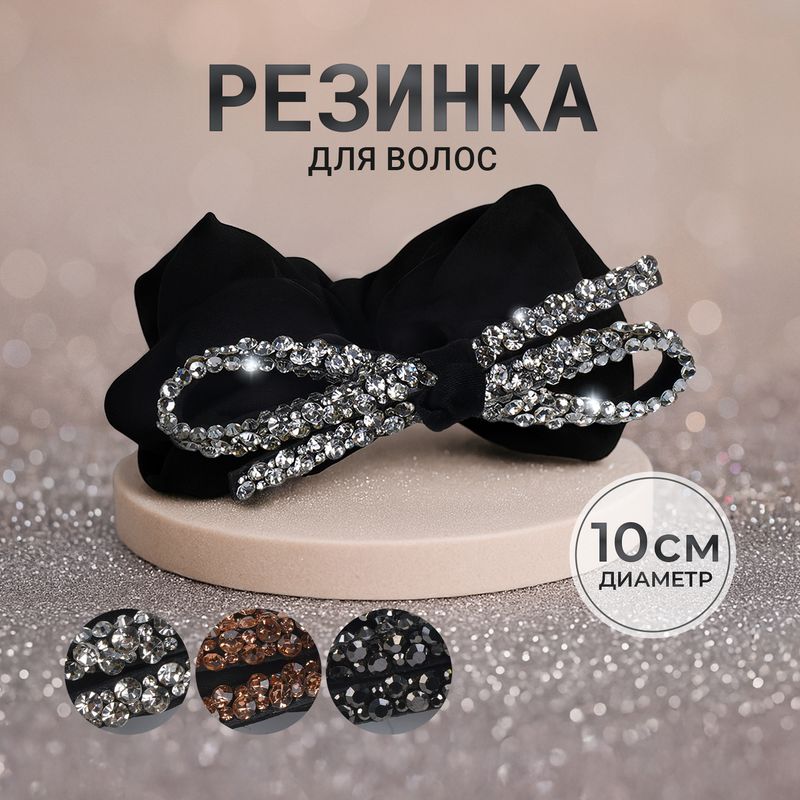 Резинка для волос, INSTYLE, с мерцающим бантиком добавит блеска и утончённости праздничной причёске. Подходит для создания вечерних пучков и хвостов. Диаметр: 10 см. Состав: полиэстер, резина, стекло, ПУ. Блистайте в новогоднюю ночь с сияющими аксессуарами для волос!