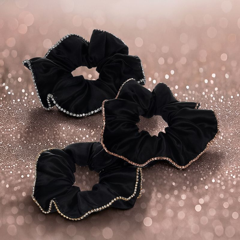 Резинка для волос, INSTYLE, с блестящей окантовкой декоративными стразами станет эффектным акцентом вечернего образа. Прекрасно подойдёт для праздничных причёсок. Диаметр: 12 см. Состав: полиэстер, резина, стекло, сталь. Товар представлен в ассортименте. Блистайте в новогоднюю ночь с сияющими аксессуарами для волос!