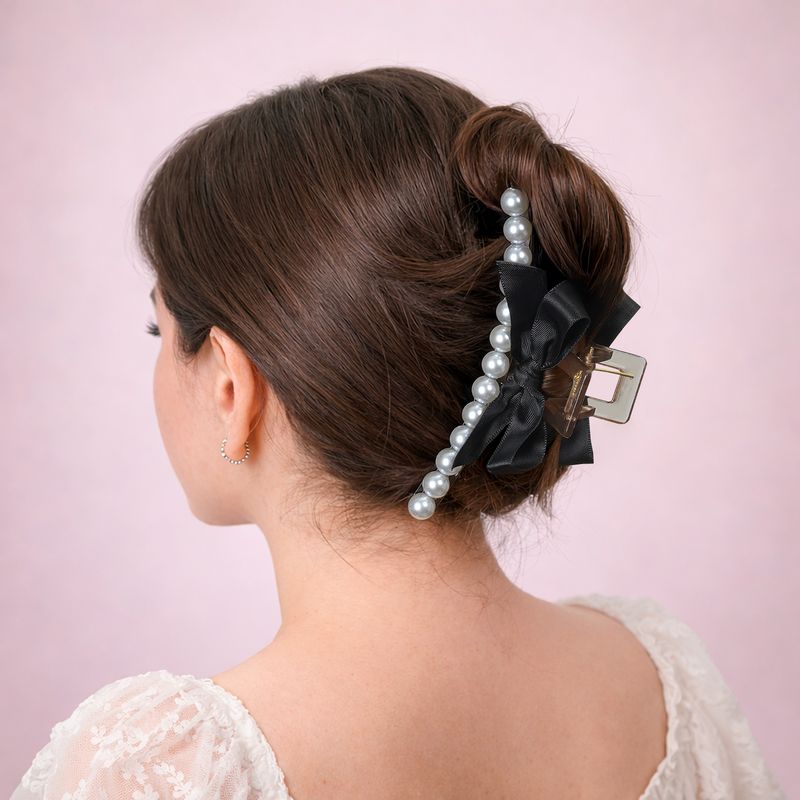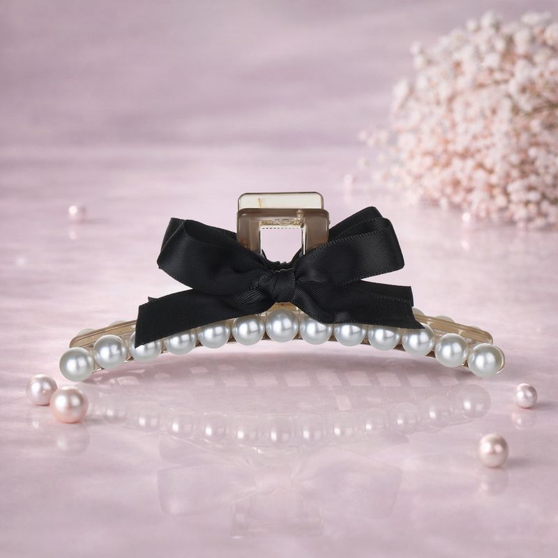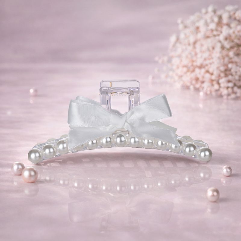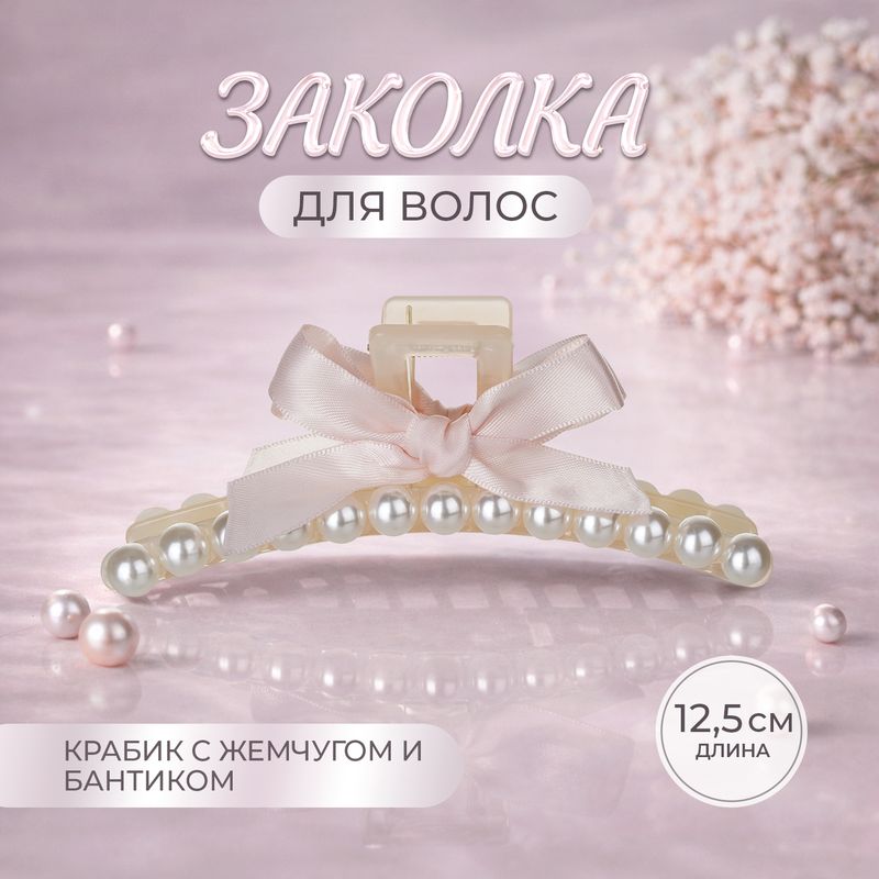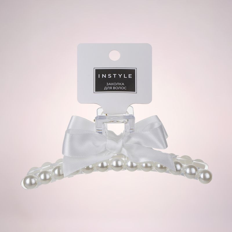 Заколка для волос, INSTYLE, в форме крабика поможет быстро создать аккуратную и элегантную причёску. Украшена жемчугом и нежным бантиком. Длина: 12,5 см. Состав: ПС, АБС, полиэстер, сталь. Товар представлен в ассортименте. Создавайте изящные и женственные образы с коллекцией аксессуаров "Жемчуг"!