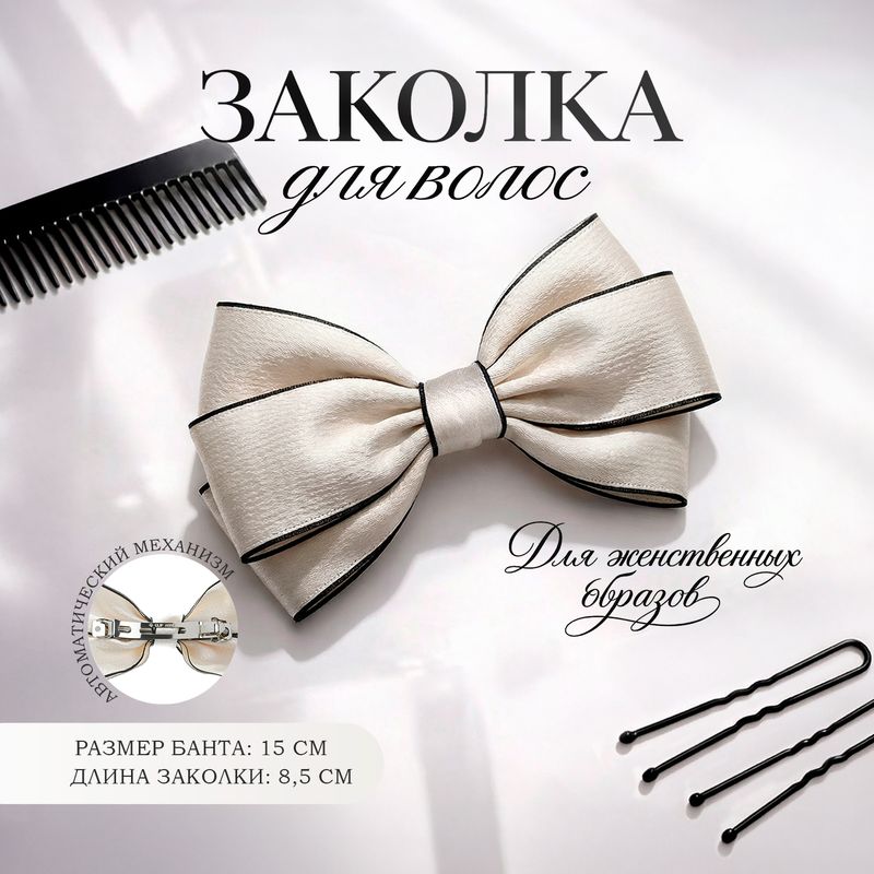 Заколка для волос, INSTYLE, с крупным бантом и автоматическим механизмом поможет быстро создать аккуратную причёску. Лаконичный дизайн в классических оттенках гармонично дополнит женственный образ. Длина заколки: 8,5 см. Размер банта: 15 см. Состав: полиэстер, сталь. Товар представлен в ассортименте.
