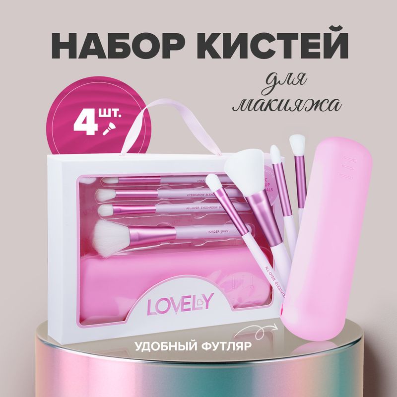 Набор кистей для макияжа, Lovely, с футляром, 4 шт.
