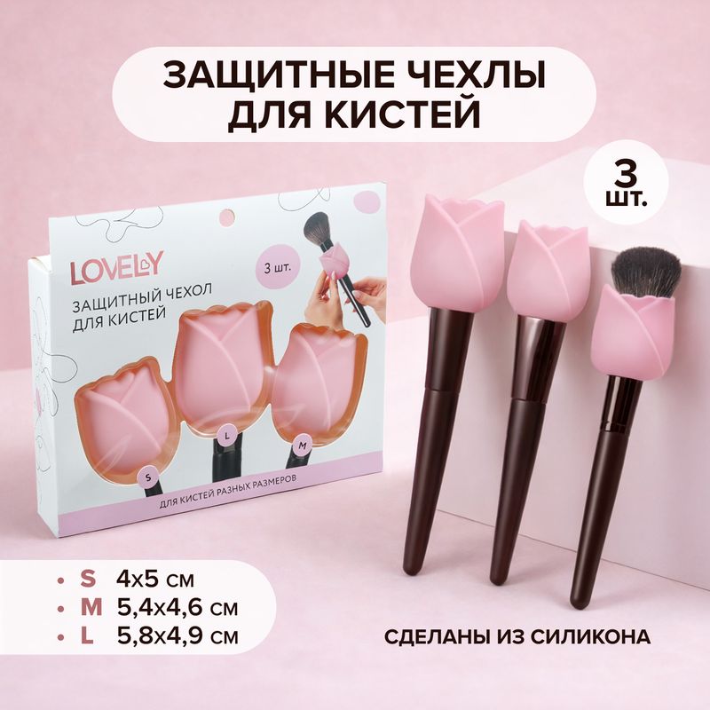 Защитный чехол для кистей, Lovely – изящное и практичное приобретение для Вашей косметички. В наборе 3 чехла разных размеров: S – 4х5 см; M – 5,4х4,6 см; L – 5,8х4,9 см. Состав: силикон. Товар представлен в ассортименте.