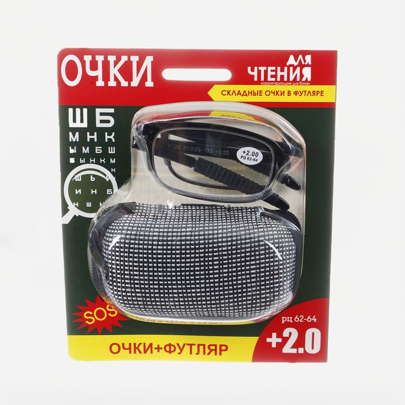 Очки складные для чтения, 5 диоптрий, футляр, в ассортименте