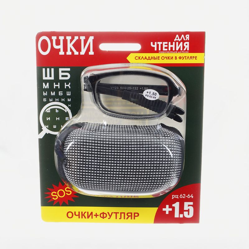 Очки складные для чтения – практичный выбор для ежедневного использования или поездок. Универсальная модель подходит мужчинам и женщинам. Очки можно компактно сложить и убрать в удобный футляр, который входит в набор. В ассортименте представлено 5 диоптрий от +1.5 до +3.5. Межзрачковое расстояние: 62-64 мм. Размер чехла: 8,5х4,5х3,5 см. Состав: оправа, линзы – пластик; футляр – деним. Перед использованием ознакомьтесь с информацией на упаковке. Готовые очки для чтения не заменяют предписанных врачом-офтальмологом рецептурных корригирующих очков.