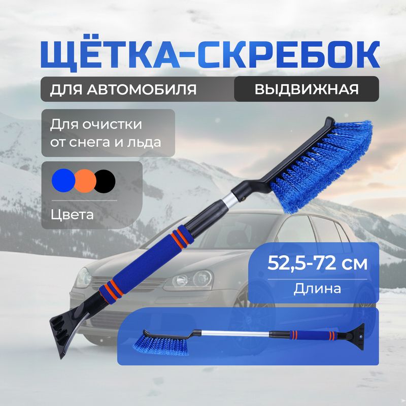 Щётка-скребок выдвижная для автомобиля, Top Race, поможет быстро убрать снег и лёд. Удобная телескопическая ручка обеспечивает комфорт при использовании. Длина в сложенном виде: 52,5 см. Выдвигается до 72 см. Товар представлен в ассортименте.