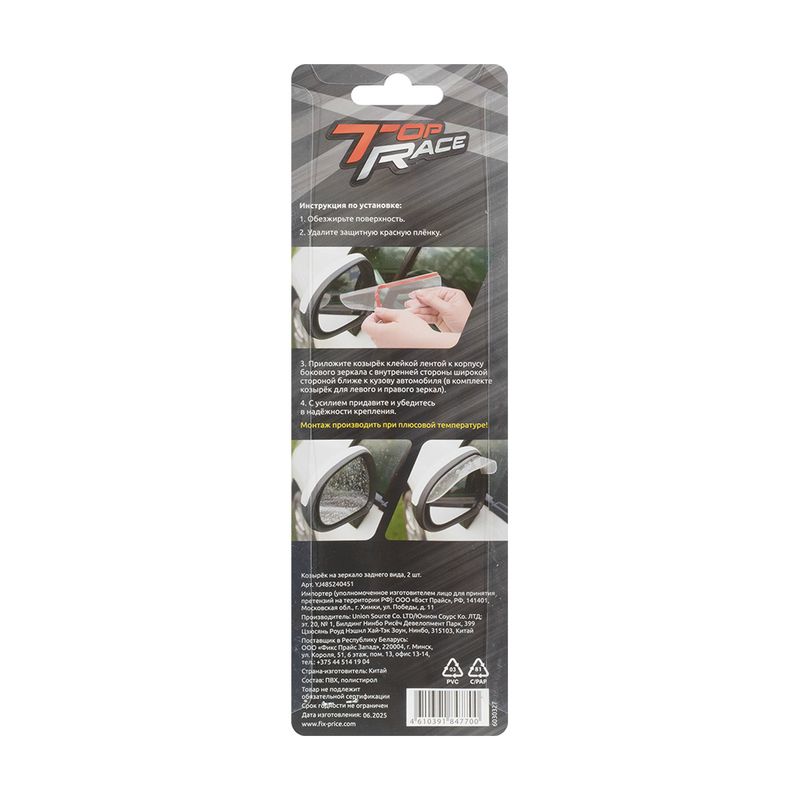 Козырёк на зеркало заднего вида, Top Race, 2 шт.