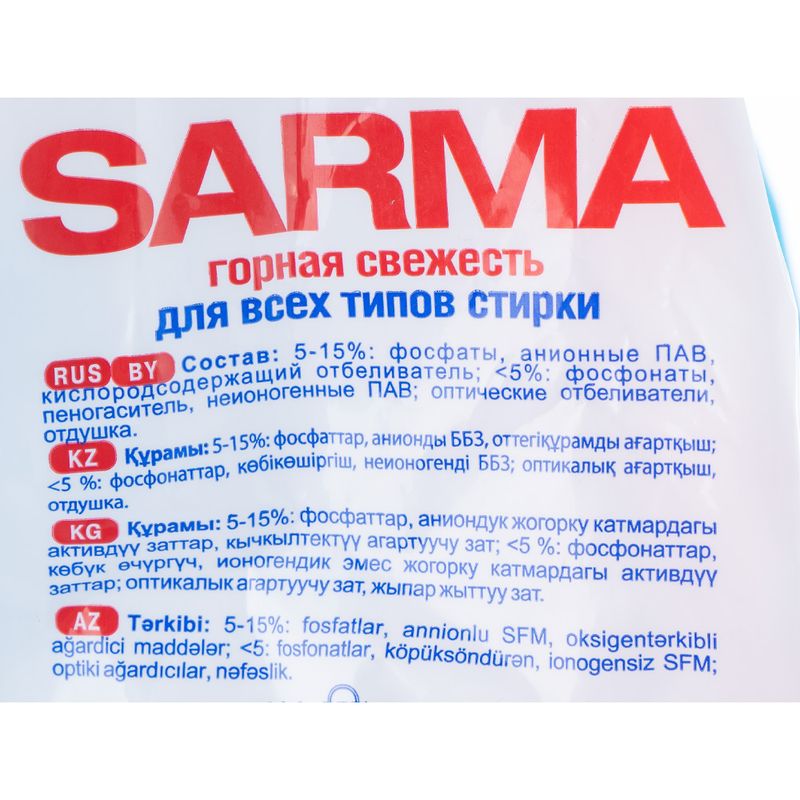Стиральный порошок "Горная свежесть", Сарма, 2,4 кг, в ассортименте