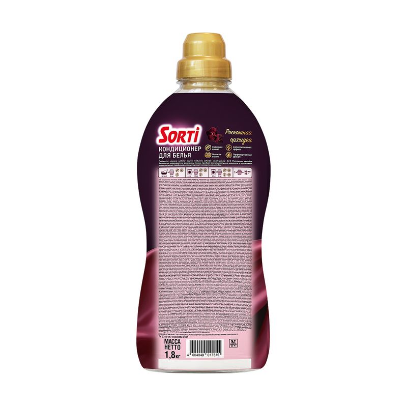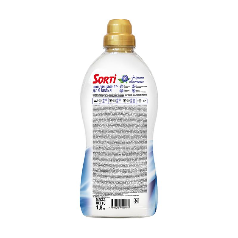 Кондиционер концентрат, Sorti, придаёт вещам мягкость и цветочный аромат, обладает антистатическим действием, облегчает глажение после стирки. Перед использованием ознакомьтесь с инструкцией и мерами предосторожности на упаковке. Одна упаковка средства рассчитана на 72 стирки. Масса нетто: 1,8 кг. Товар представлен в ассортименте.