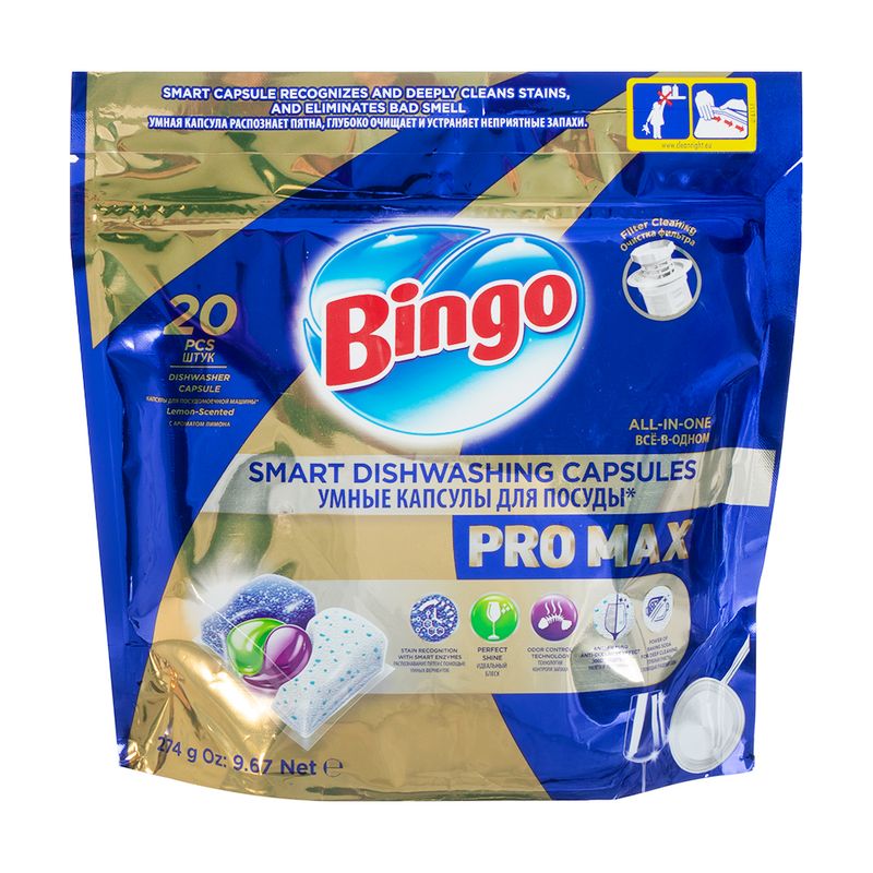 Капсулы для посудомоечных машин "PRO MAX", BINGO, 20 шт.