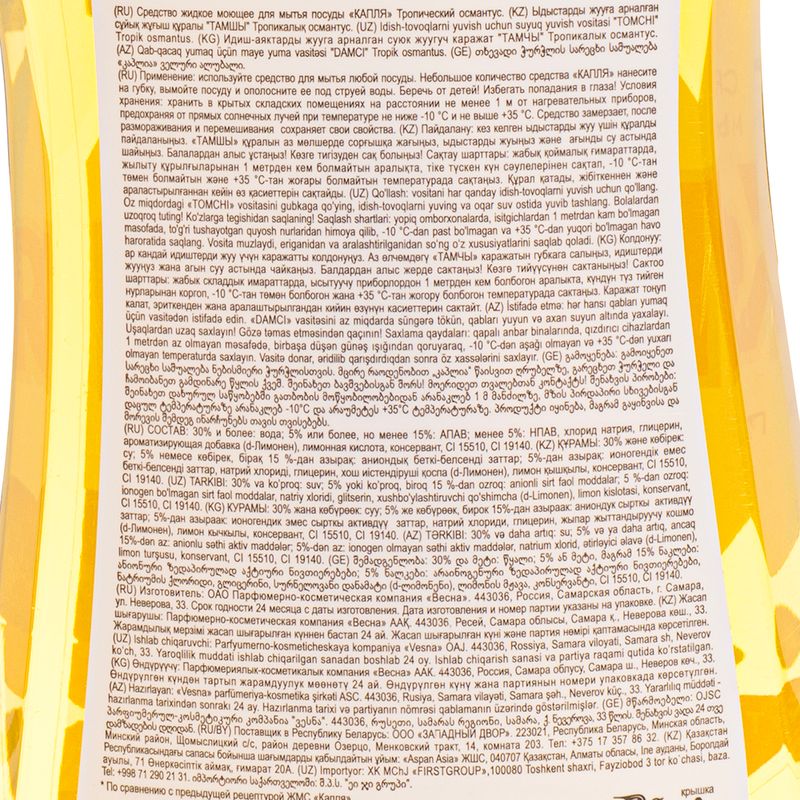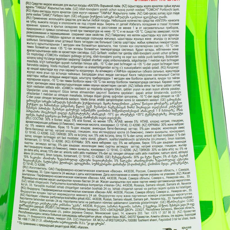 Средство для мытья посуды, Капля, эффективно удаляет загрязнения и подходит для мытья посуды, а также фруктов и овощей. Перед использованием ознакомьтесь с инструкцией и мерами предосторожности на упаковке. Масса нетто: 500 г. Товар представлен в ассортименте.