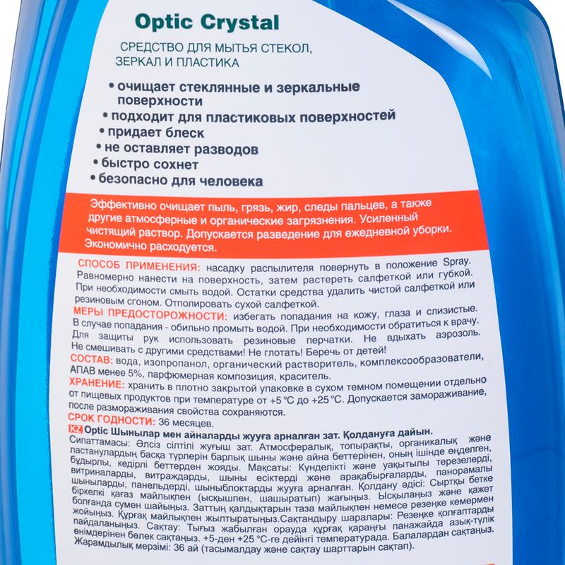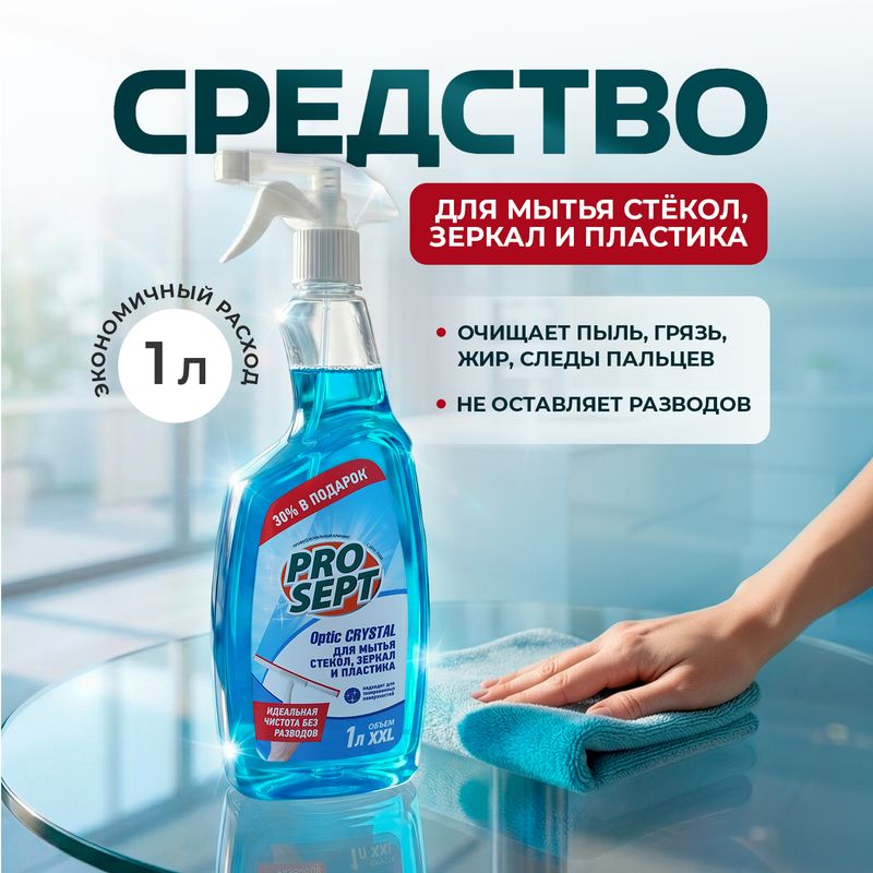 Средство для мытья стёкол, зеркал и пластика "Optic Crystal", ProSept, эффективно очищает пыль, грязь, жир, следы пальцев и другие загрязнения. Не оставляет разводов. Быстро сохнет. Допускается разведение для ежедневной уборки. Экономично расходуется. Перед использованием ознакомьтесь с инструкцией и мерами предосторожности на упаковке. Объём: 1 л.