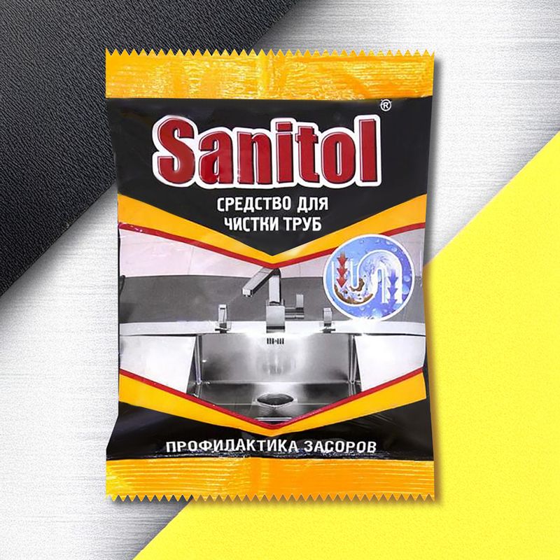 Средство для чистки труб, Sanitol, прекрасно справится с засорами и предотвратит их появление в будущем! Простое в применении. Перед использованием ознакомьтесь с инструкцией и мерами предосторожности на упаковке. Масса нетто: 90 г.