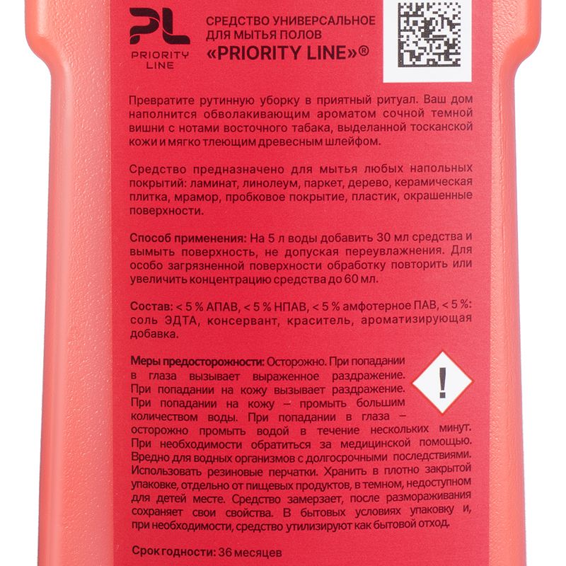 Парфюмированное средство для мытья пола, Priority Line — эффективное очищение и стойкий аромат в одном флаконе. Средство удаляет загрязнения, придавая поверхности блеск и свежесть. Изысканный шлейф наполняет дом атмосферой уюта и чистоты. Перед применением ознакомьтесь с инструкцией и мерами предосторожности на упаковке. Объём: 500 мл. Товар представлен в ассортименте.
