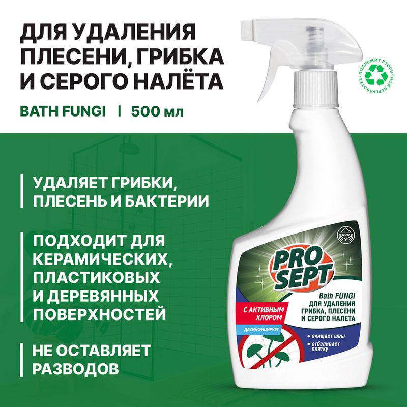 Моющее средство для удаления плесени, PROSEPT, эффективно помогает устранить плесень и грибок с разных поверхностей в ванной комнате, на кухне и в других помещениях. Средство проникает в поры загрязнённых участков и способствует удалению стойких налётов, оставляя поверхность чистой и готовой к дальнейшей уборке. Объём: 500 мл.