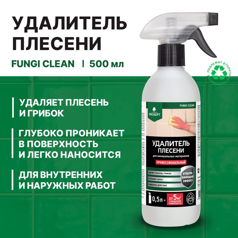 Средство чистящее "Удалитель плесени", PROSEPT, эффективно удаляет плесень, грибок, мох, водоросли мыльные и другие глубоко въевшиеся загрязнения. Применяется для очистки внутренних и наружных стен зданий, ванных комнат, душевых кабин, деревянных поверхностей в банях и саунах. Устраняет развитие плесени и микроорганизмов, а также удаляет запахи. Перед использованием ознакомьтесь с инструкцией и мерами предосторожности на упаковке. Объём: 0,5 л.