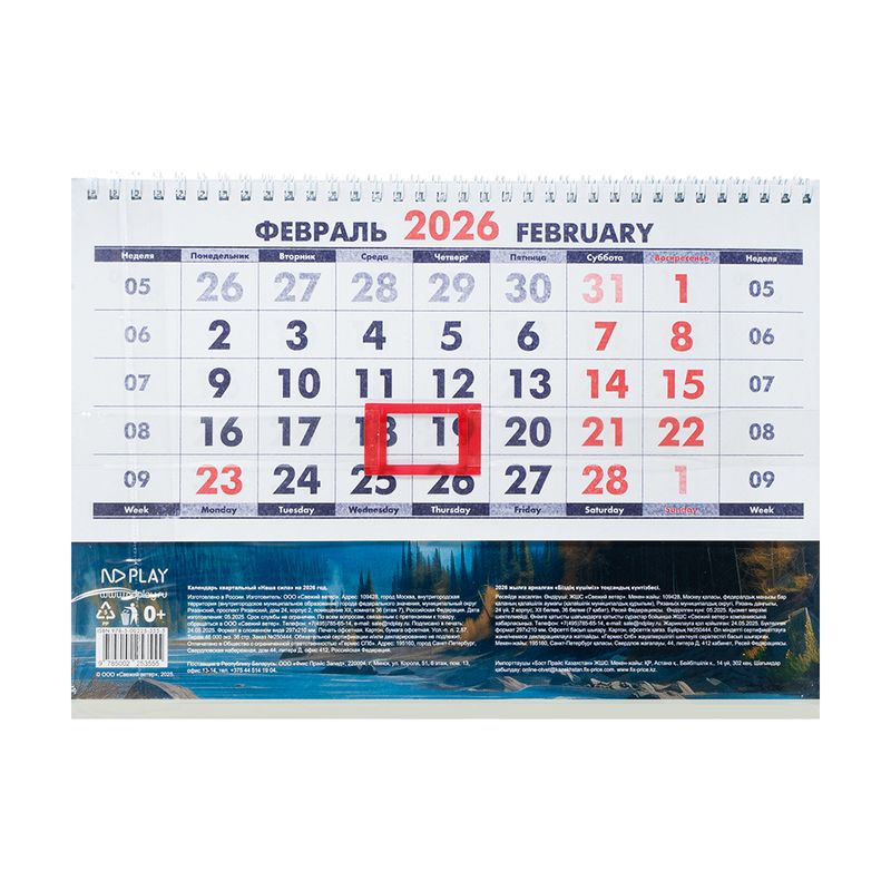 Календарь квартальный 2026 года — удобное решение для планирования дел, встреч и важных событий. Размер в сложенном виде: 297х210 мм. Состав: картон, бумага офсетная. Товар представлен в ассортименте.