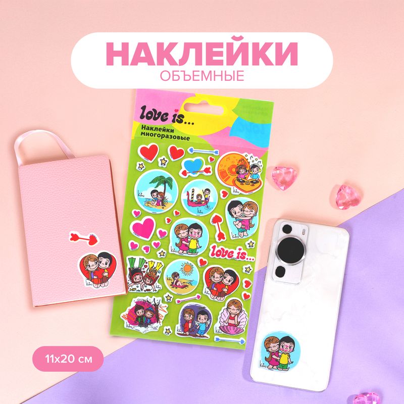 Наклейки объёмные, Love is, 11х20 см, в ассортименте
