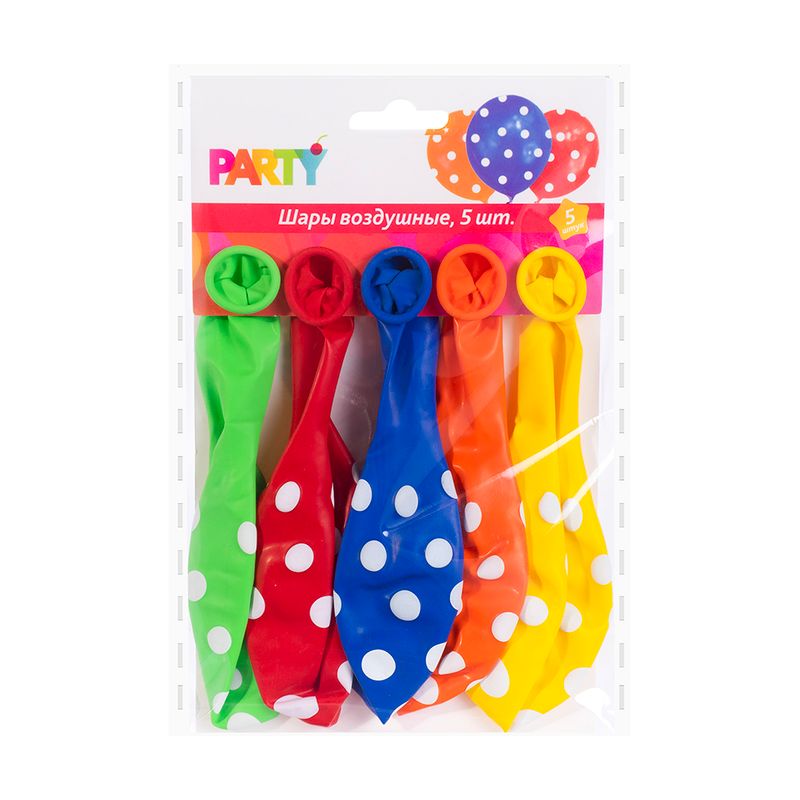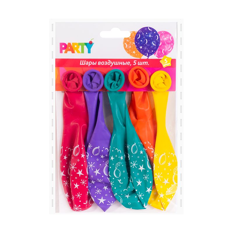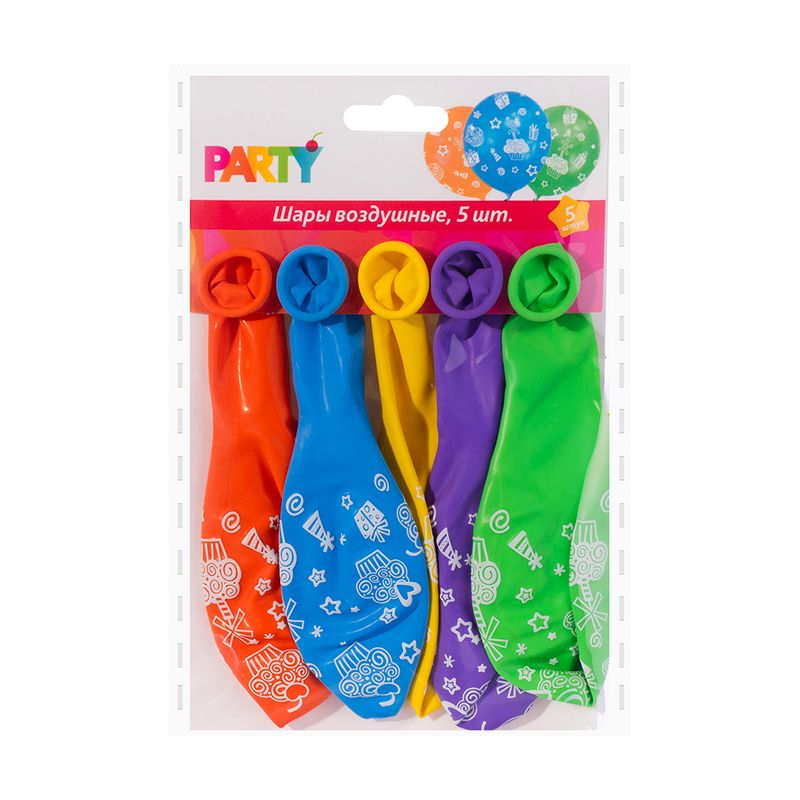 Шары воздушные, Party — яркое украшение для праздника и создания настроения. Подходят для оформления вечеринок, дней рождения и других событий, легко надуваются и помогают быстро преобразить пространство. В наборе 5 шаов. Товар представлен в ассортименте.