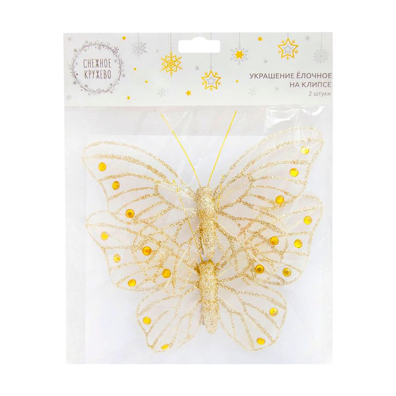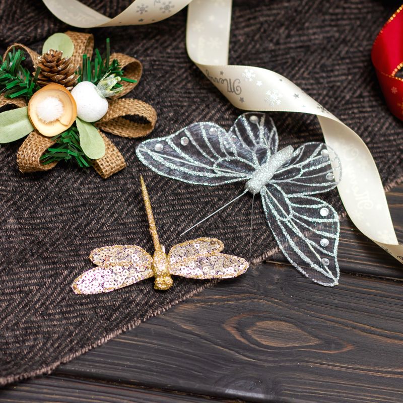 Украшение ёлочное на клипсе, Снежное кружево, выполнено в виде настоящих бабочек и стрекоз. Эти оригинальные элементы зимнего декора помогут Вам нарядить дом к новогодним праздникам и удивить каждого гостя. Клипса позволит закрепить украшение на ветках и гирляндах. Количество в упаковке: 2 шт. Состав: полиэстер, пенополистирол, сталь, ПЭТ. Товар представлен в ассортименте.