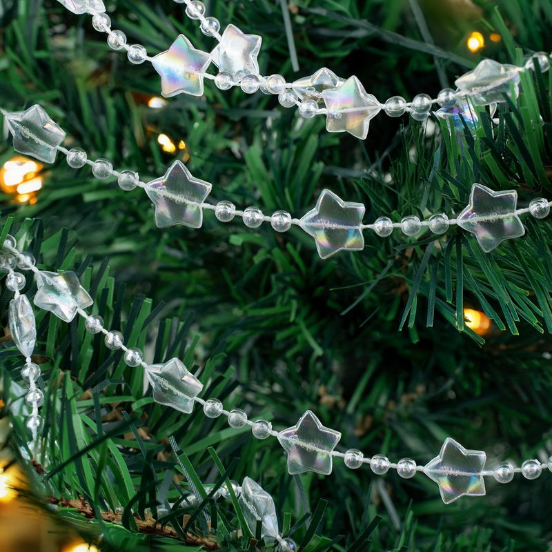 Бусы новогодние, Снежное кружево – стильное праздничное украшение. Ёлка, окна, картины, зеркала, книжные полки – с этими бусами всё засверкает волшебными красками! Длина: 2,7 м. Состав: полистирол, хлопок. Товар представлен в ассортименте.