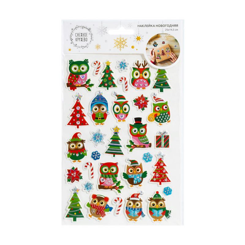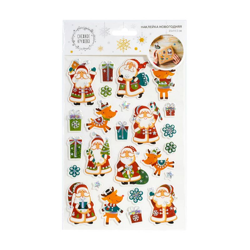 Наклейка новогодняя, Снежное кружево, позволит легко и быстро украсить подарки к праздникам! Яркие объёмные наклейки будут отлично смотреться на подарочных коробках. Перед применением ознакомьтесь с инструкцией на упаковке. Размер листа с наклейками: 25х14,5 см. Состав: ПВХ, ПЭТ. Товар представлен в ассортименте.