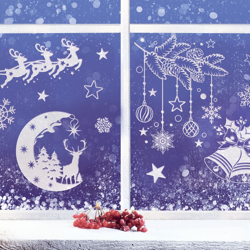 Наклейка флуоресцентная новогодняя "Морозные узоры", Снежное кружево, светится в темноте, создавая праздничную атмосферу вечером! Перед использованием ознакомьтесь с инструкцией на упаковке. Размер листа: 38х30 см. Состав: ПВХ, ПЭТ. Товар представлен в ассортименте.