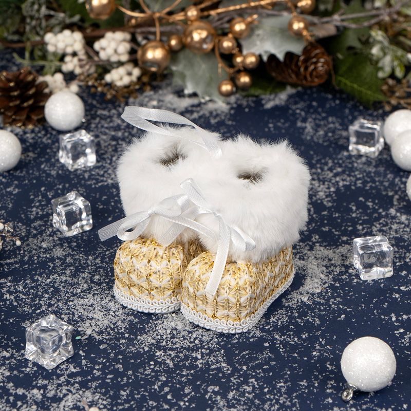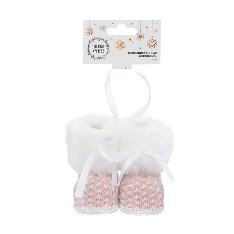 Декорация ёлочная "Ботиночки", Снежное кружево – это маленькие пушистые сапожки, которые станут оригинальным декором. Высота: 9 см. Состав: полиэтилен, полиэстер. Товар представлен в ассортименте.