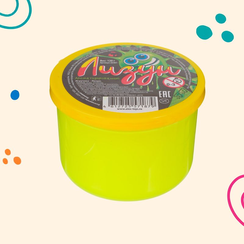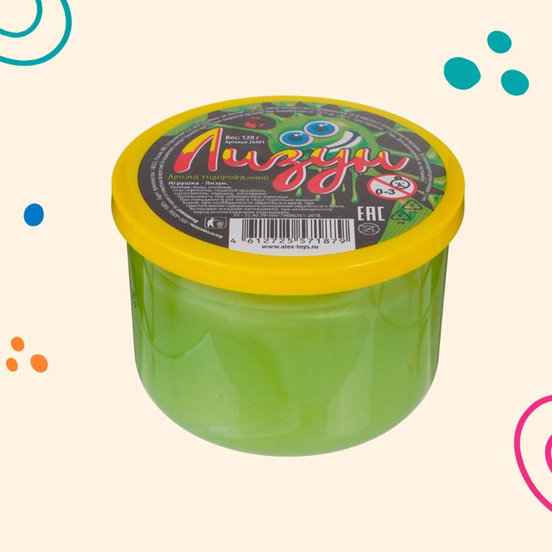 "Лизун" представляет собой яркую и приятную на ощупь массу с тягучей структурой. Оригинальный сюрприз для Вашего ребёнка! "Лизун" упакован в пластиковую баночку с крышкой и имеет приятный аромат. Для детей от 3 лет. Перед использованием ознакомьтесь с мерами предосторожности на упаковке. Объём: 120 мл. Товар представлен в ассортименте.