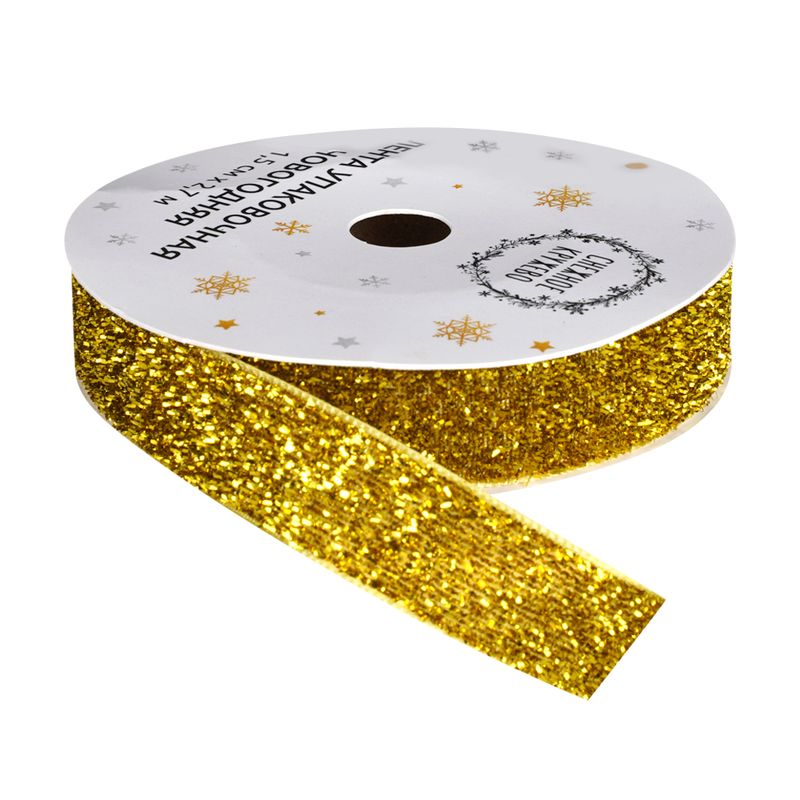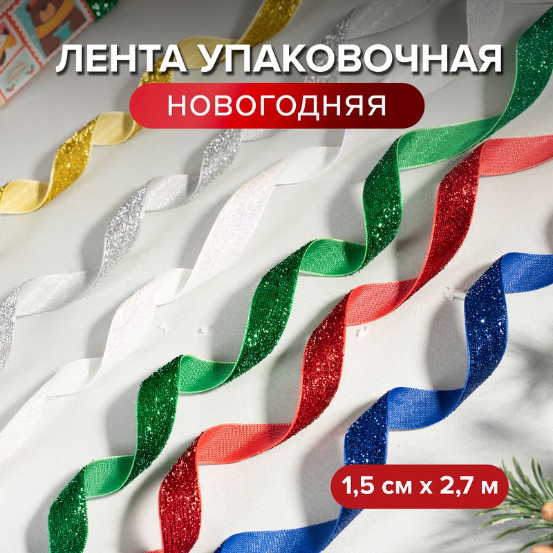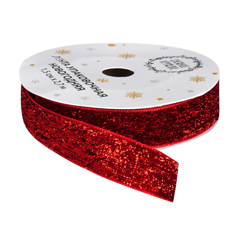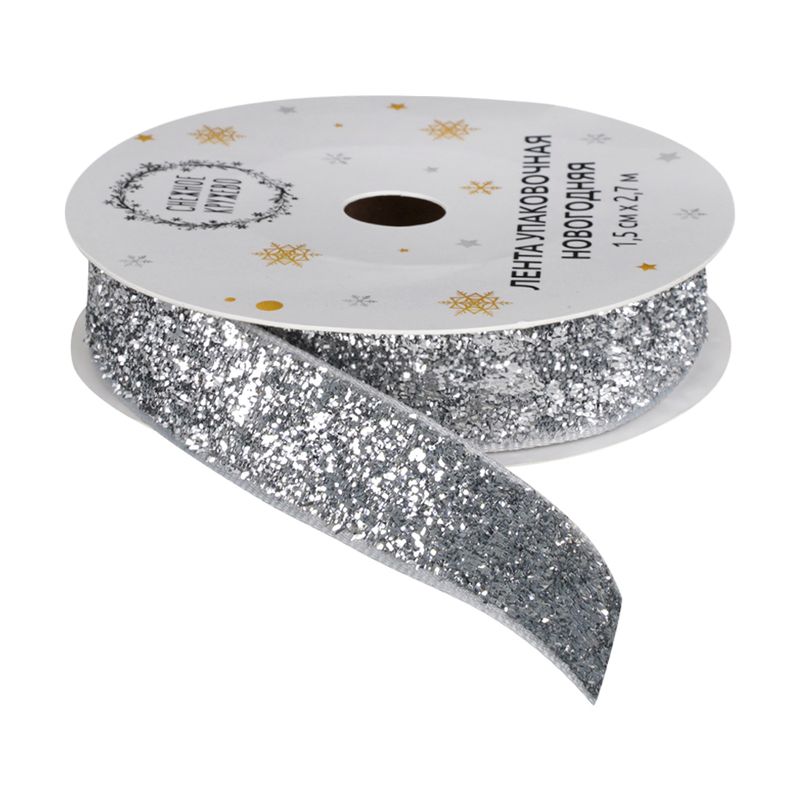 Лента упаковочная новогодняя, Снежное кружево, 1,5 см х 2,7 м, в ассортименте