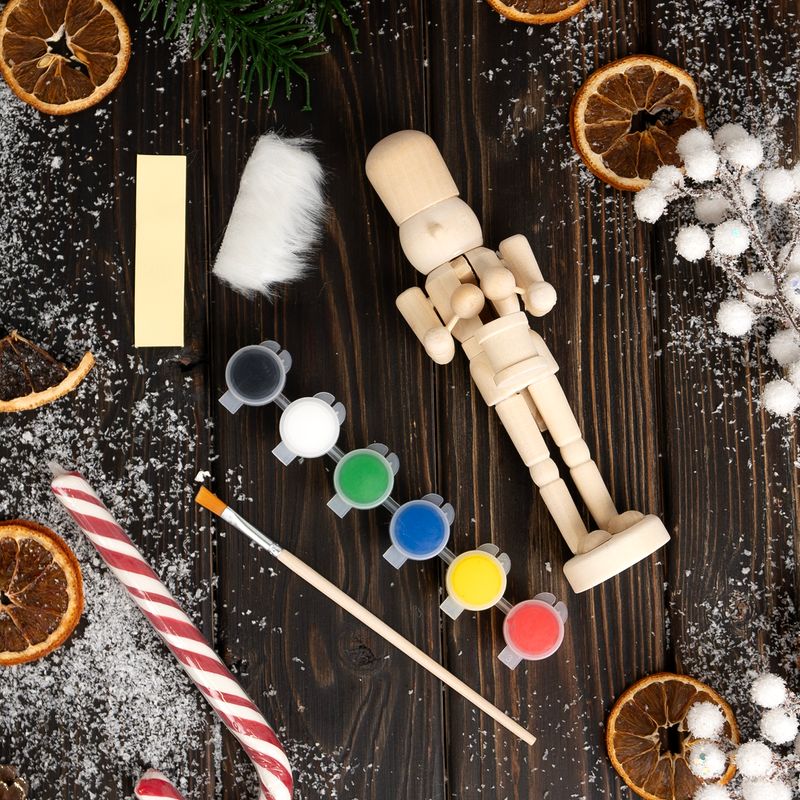 Детский новогодний набор для творчества "Щелкунчик", Снежное кружево, состоит из деревянной фигурки, кисточки, красок, а также волос, бороды и скотча для их крепления. Устройте вечер поделок в преддверии Нового года и раскрасьте Щелкунчика вместе с ребёнком! Для детей от 3 лет. Перед использованием ознакомьтесь с инструкцией и мерами предосторожности на упаковке. Высота фигурки: 19 см. Состав: дерево, полиэтилен, краски, полиэстер, сталь, бумага. Товар представлен в ассортименте.