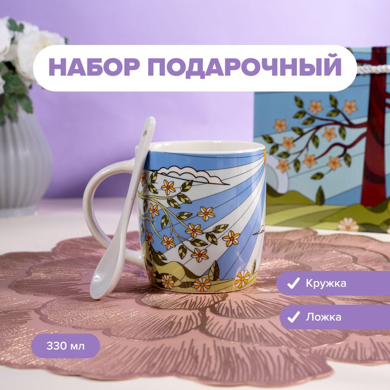 Набор подарочный (кружка и ложка), With Love – это прекрасный способ выразить заботу и внимание в праздник 8 марта. Кружка с нежным цветочным принтом и изящная ложечка станут героями многих уютных воспоминаний. Рисунок нанесён методом печати под высоким давлением и дополнен тиснением искусственным золотом. Объём кружки: 300 мл. Длина ложки: 13 см. Состав: фарфор. Товар представлен в ассортименте.