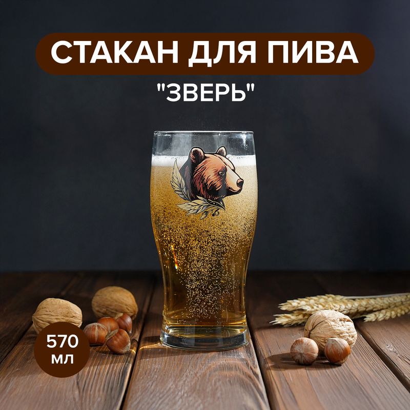 Стакан для пива "Зверь", ОСЗ, 570 мл, в ассортименте