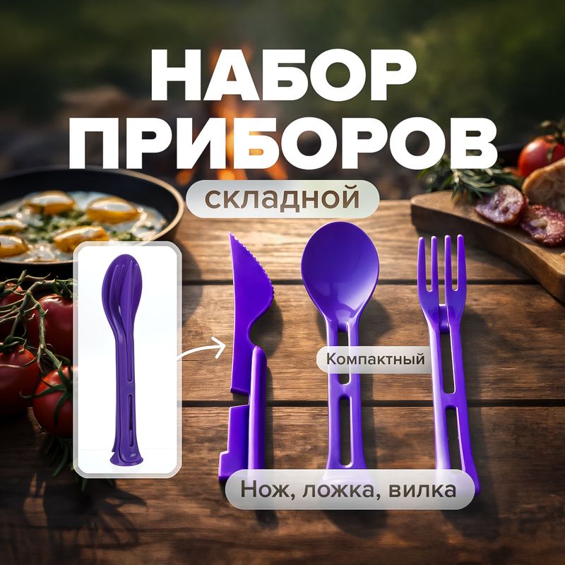 Набор складной: ложка, вилка, нож, Hitt, незаменим для пикника или путешествия. Столовые приборы компактно складываются. Состав: полипропилен. Товар представлен в ассортименте. Вы также можете приобрести другие товары для пикника: одноразовые стаканы (ЛК: 5321308, 5321462), тарелки (ЛК: 5321309, 5321463), миски (ЛК: 5321310), вилки (ЛК: 5321311), а также бамбуковые шпажки (ЛК: 5343040), сумка-холодильник (ЛК: 5343128) и аккумулятор холода (ЛК: 5343049).