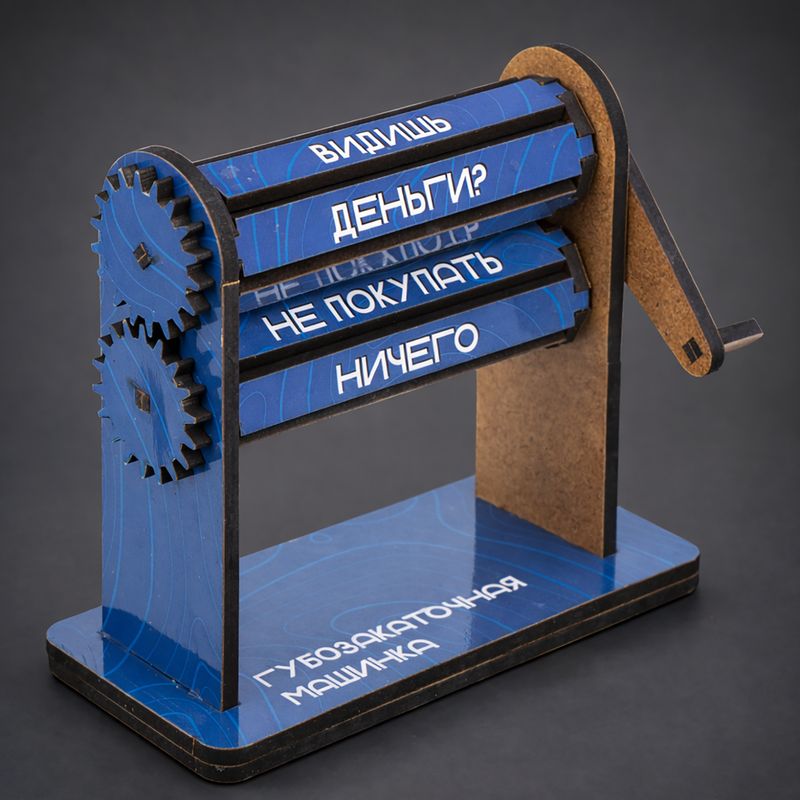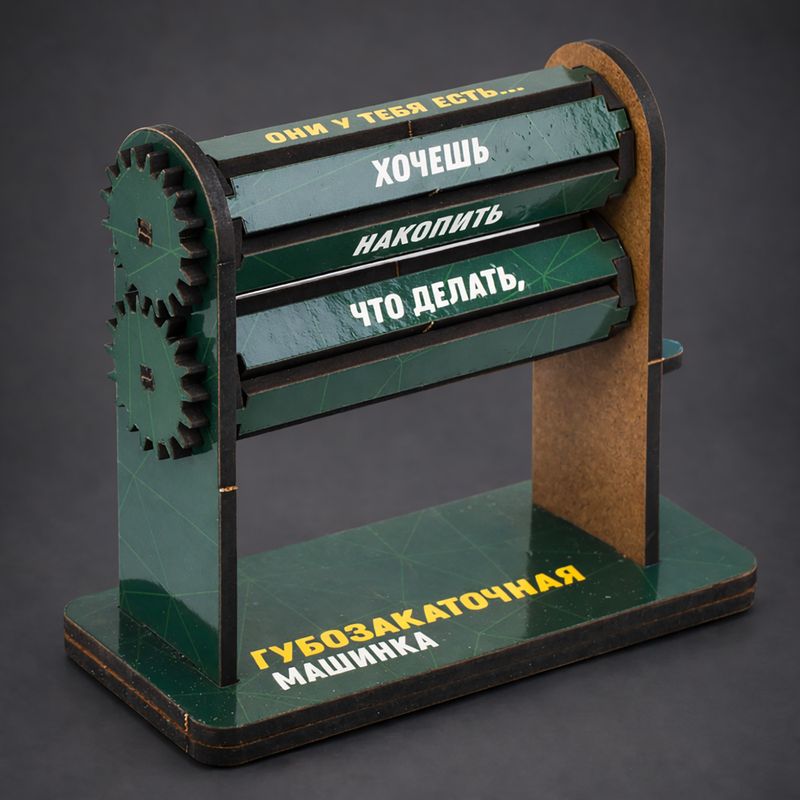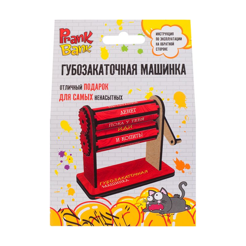 Губозакаточная машинка, Prank Bank – прикольный подарок для самых ненасытных! Размер: 11х5х10 см. Состав: ХДФ, картон, ламинационная пленка. Товар представлен в ассортименте.