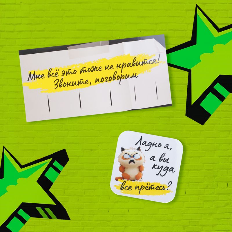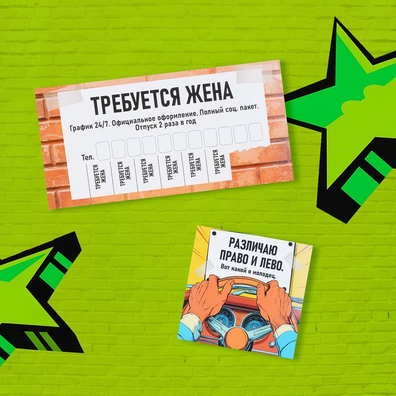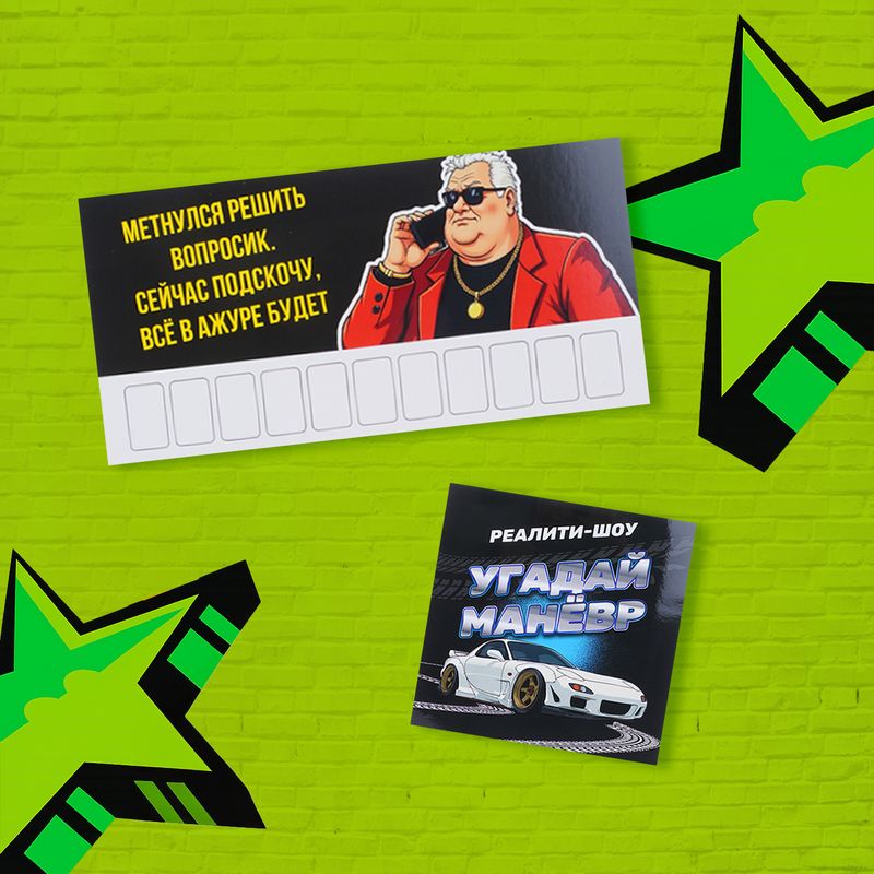 Автовизитка с наклейкой, Prank Bank – остроумное решение для размещения контактного номера на автомобиле! Украшены забавными картинками надписями. Размеры: автовизитка – 20х10; наклейка – приблизительно 15х15. Состав: полиграфический картон, самоклейка на бумажной основе, ламинационная плёнка, офсетные краски. Товар представлен в ассортименте.