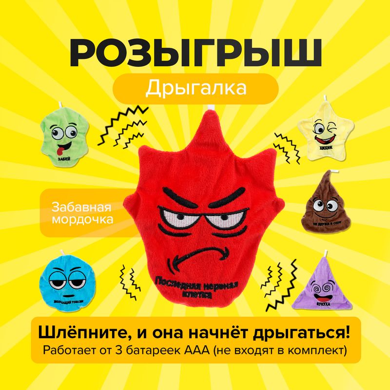 Розыгрыш "Дрыгалка", Prank Bank – отличный выбор для уморительного пранка. Шлёпните забавную мордочку, и она начнёт дрыгаться! Работает от 3 батареек типа ААА, не входят в комплект. Перед использованием ознакомьтесь с инструкцией на упаковке. Приблизительный размер: 19х18 см. Состав: полиэстер, полипропилен, ПВХ, металл. Товар представлен в ассортименте.