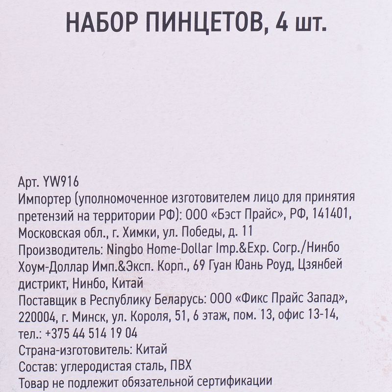 Набор пинцетов, Master Hand, пригодится при монтаже и ремонте электротехники, а также при работе с мелкими деталями. В упаковке 4 пинцета. Состав: углеродистая сталь, ПВХ.