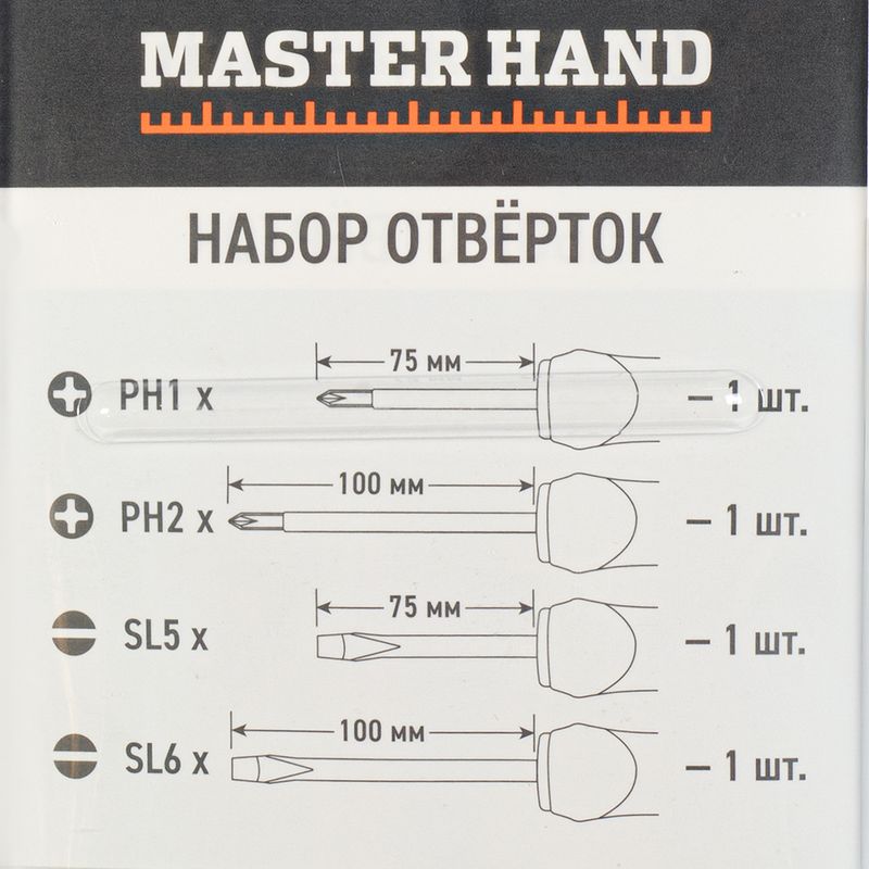 Набор отверток, Master Hand, 4 шт., в ассортименте