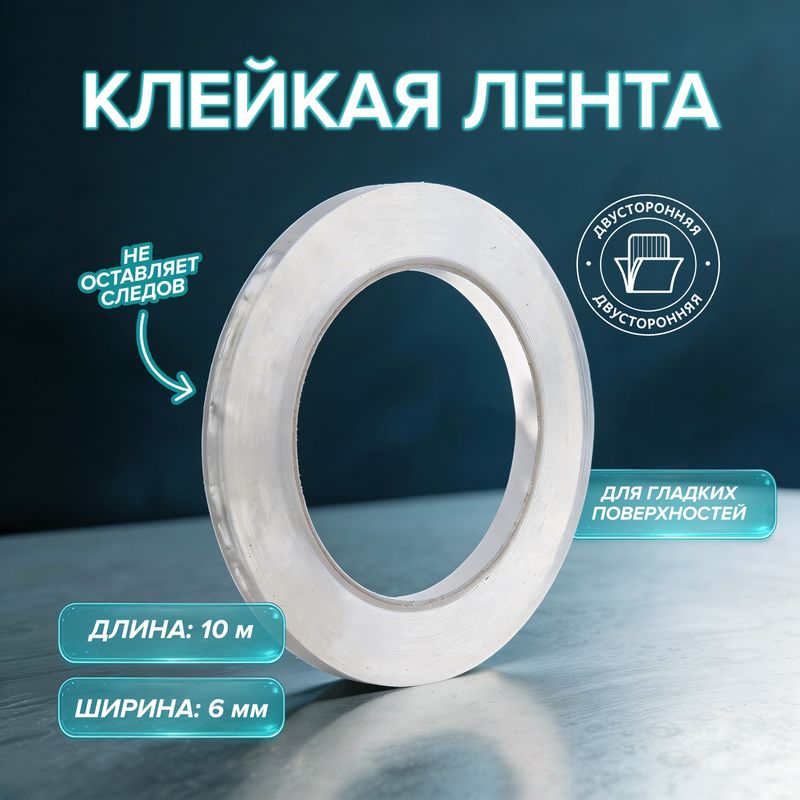 Клейкая лента двусторонняя, Master Hand, подойдёт для крепления различных предметов в быту и при декоре. Хорошо фиксируется на гладких и непористых поверхностях. При необходимости легко удаляется, не оставляя следов. Размер: 6 мм х 10 м. Состав: акрил, полиэтилен, ПЭТ.
