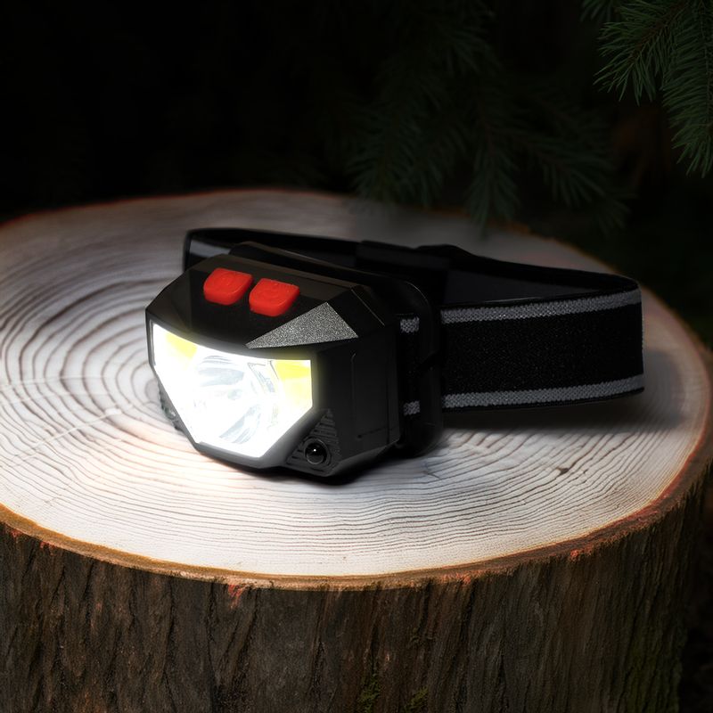 Фонарь налобный аккумуляторный, FLARX – полезное приобретение для туризма, строительных работ и других занятий в тёмное время суток. 17 светодиодов (1 LED, 16 COB). Регулируемый угол наклона. Фонарь оснащён сенсорными датчиками, с помощью которых его можно легко включать и выключать. Кнопки включения/выключения фонаря и сенсорных датчиков расположены на корпусе. Заряжается при помощи кабеля USB (25 см), в комплекте. Время работы без подзарядки: 1,5 часа. Ёмкость аккумуляторной батареи: 200 мАч. Напряжение: 3,7 В. Мощность: 1 LED – 1 Вт, 16 COB – 2 Вт. Световой поток: 1 LED – 100 лм, 16 COB – 300 лм. Перед использованием ознакомьтесь с инструкцией и мерами предосторожности на упаковке. Состав: АБС, литий-ионный аккумулятор, полиэстер, силикон, ПВХ, сталь, медь.