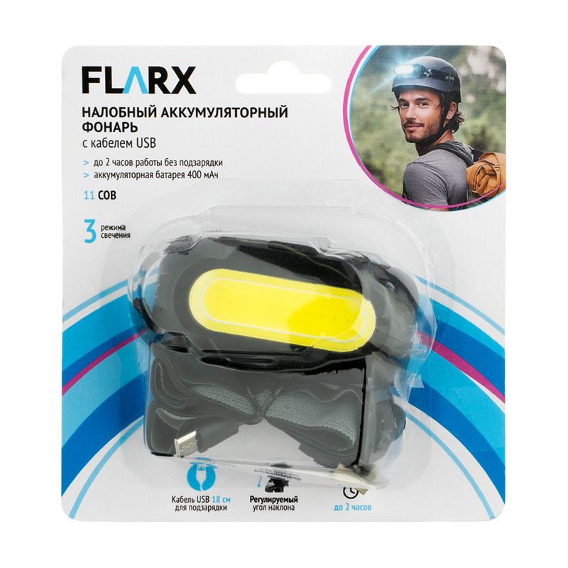 Налобный аккумуляторный фонарь с кабелем USB, FLARX