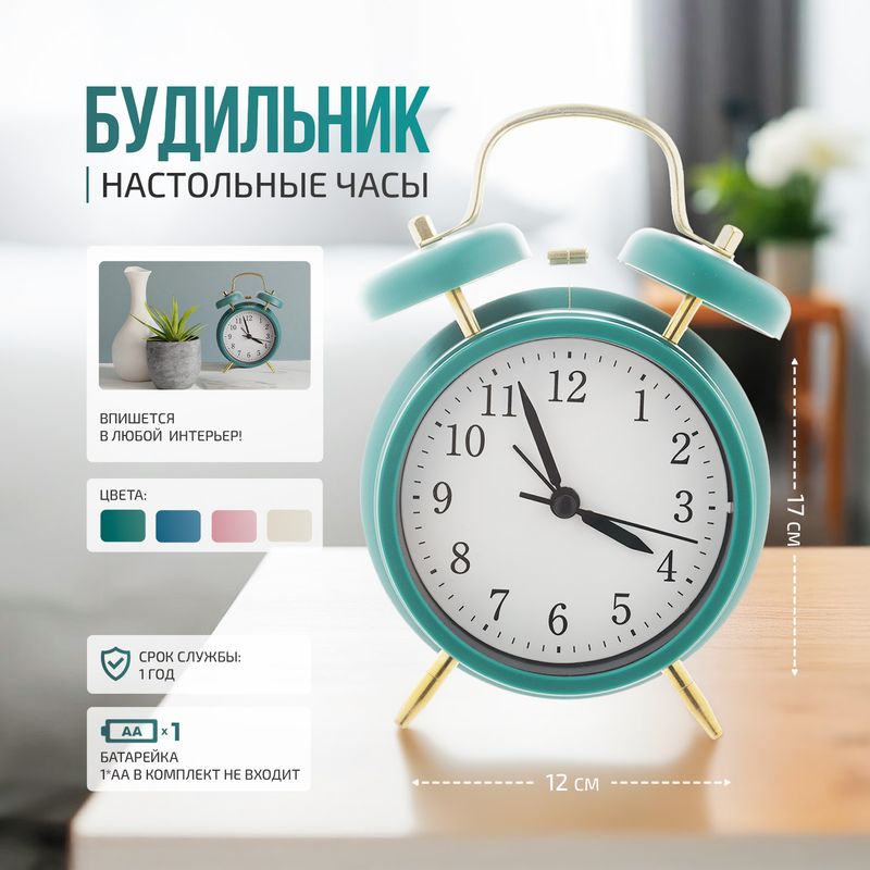Будильник, FLARX, в стильном дизайне гармонично дополнит любой интерьер. Бесшумный ход. Перед использованием ознакомьтесь с инструкцией и мерами предосторожности на упаковке. Работает от 1 батарейки типа АА, в комплект не входит. Напряжение: 1,5 В. Мощность: 0,0006 Вт. Размер: 17х12 см. Состав: сталь, ударопрочный полистирол, медь, бумага. Товар представлен в ассортименте.