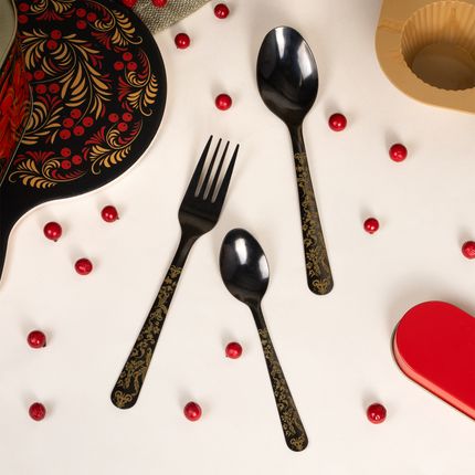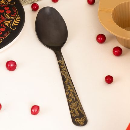 Арт. 5021722Ложка столовая, O'Kitchen, украшена сказочными золотистыми узорами. Длина: 18 см. Состав: нержавеющая сталь. Волшебство узоров оживёт на Вашем столе с коллекцией «Жар-птица»!