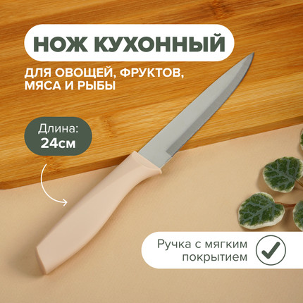 Арт. 5021725Нож кухонный, O’Kitchen, станет универсальным помощником на кухне. Подходит для нарезки овощей и фруктов, а также для разделки мяса и рыбы. Острое лезвие из нержавеющей стали помогает получать аккуратные кубики и ровные слайсы, а эргономичная ручка с soft-touch покрытием обеспечивает комфортный и надёжный захват во время работы. Нож не впитывает запахи и не влияет на вкусовые качества продуктов. Длина: 24 см. Состав: нержавеющая сталь, полипропилен, ПВХ. Также Вы можете приобрести нож кухонный (ЛК: 5021726) длиной 20,5 см. Товар представлен в ассортименте. Эстетика Вашей кухни в коллекции «Минимализм&Уют»!